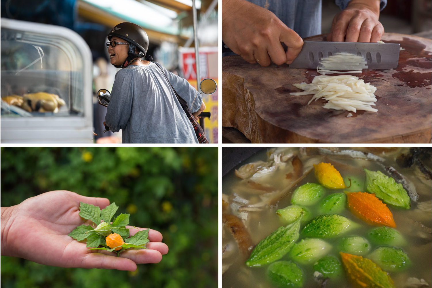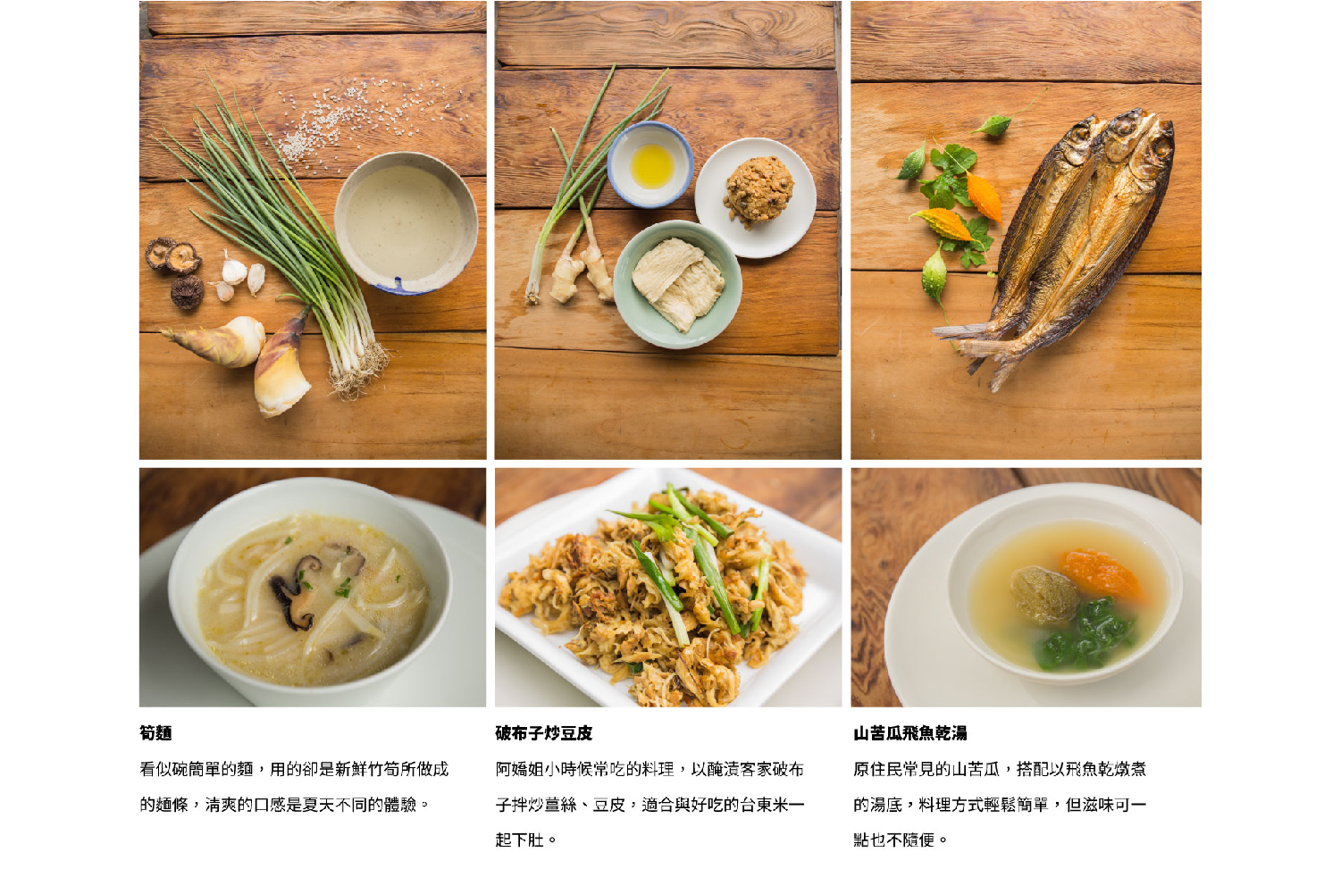 採集料理_阿嬌姐:筍麵・破布子炒豆皮・飛魚乾山苦瓜湯