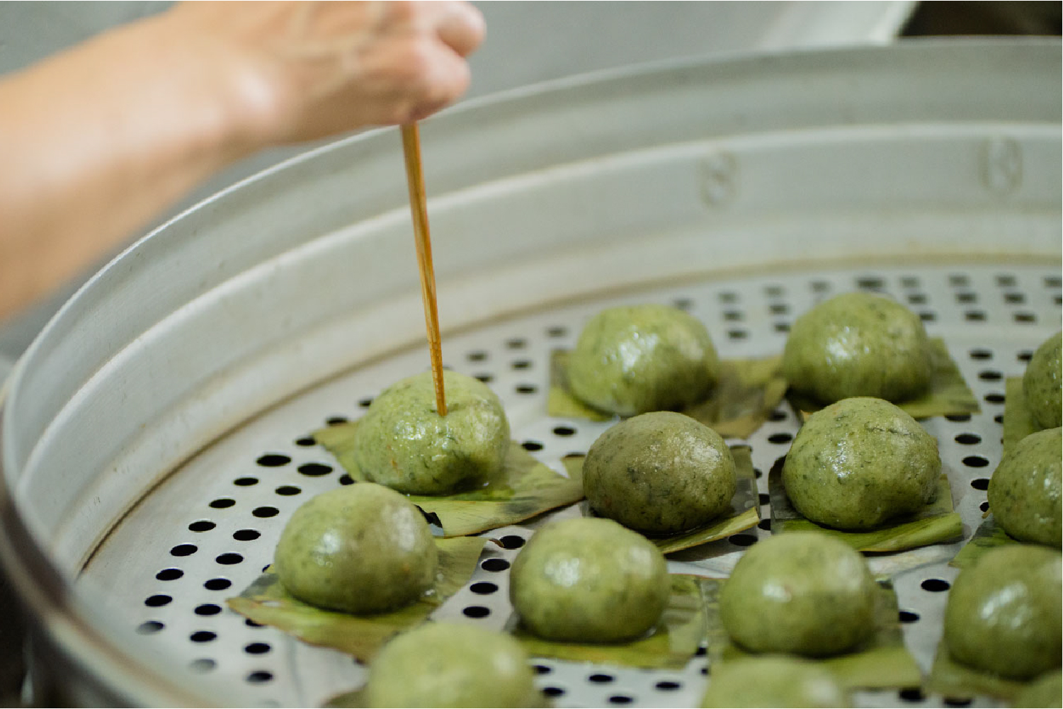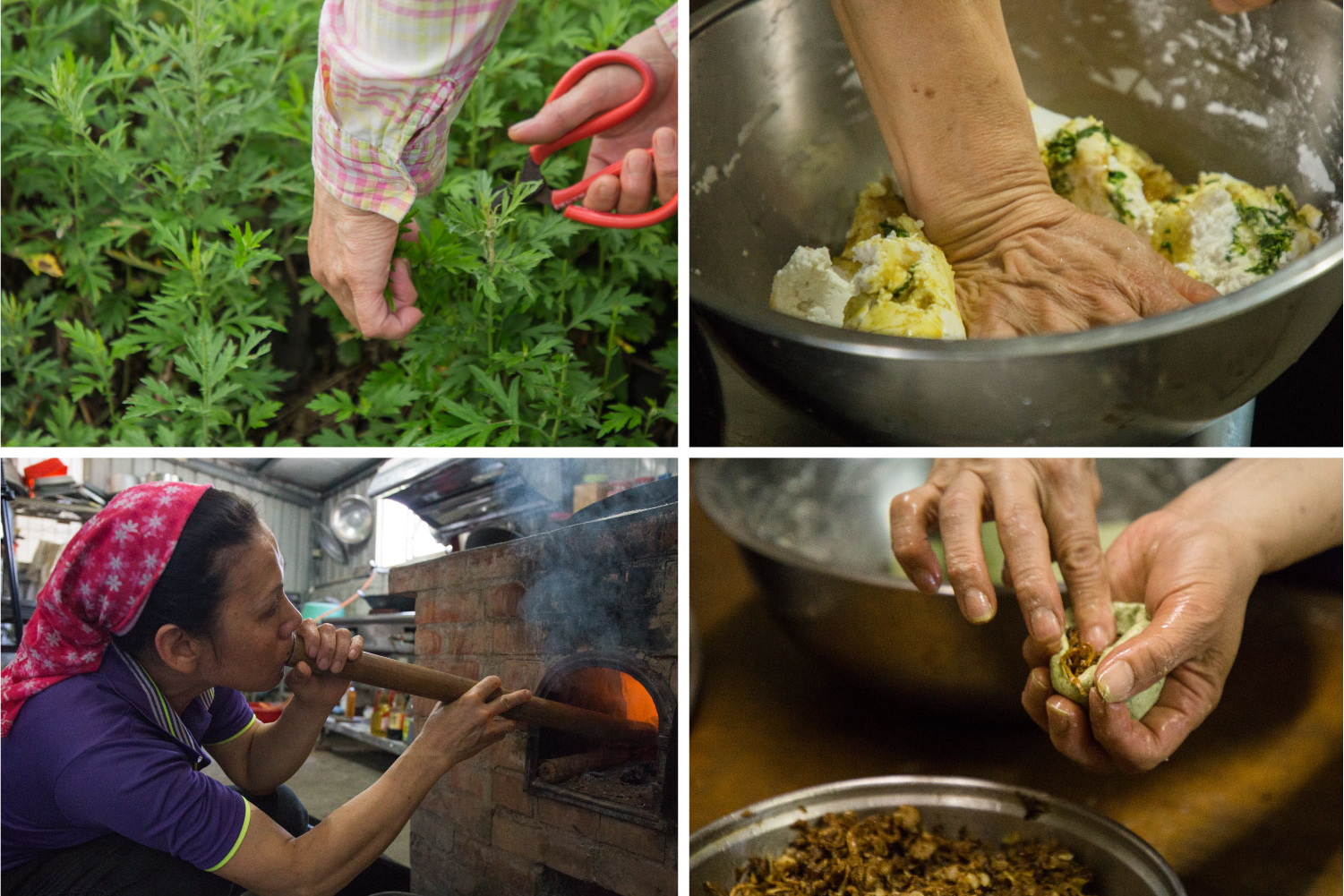 一早跟著秋梅姐前往田地,自家栽種的艾草拔起,成為製作艾草粿的原料。壓粿、生火、曬菜脯⋯⋯秋梅姐全都一手包辦,步驟解說詳細,就是希望能將傳統的客家米食文化傳承給下一代。