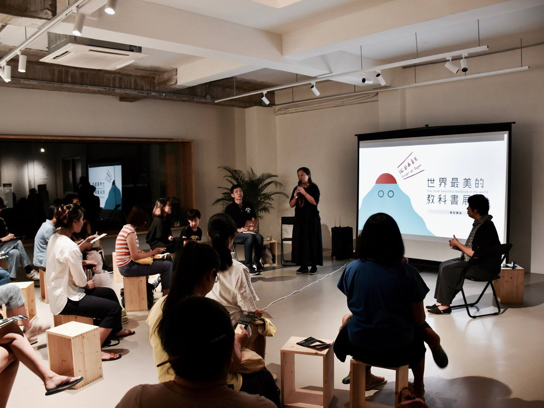 而在臺東場開展前,為回應台東在地教育議題,設計中心特別邀請 晃晃二手書店的店主素素以「在地觀點」一起來談談台東的教科書,並與兩位深耕台東教育的朋友 —— 卡塔文化工作室負責人 林秀慧 Beads Ata、 臺東均一實驗高級中學社會科教師 劉政暉 Andreas Liu,分別從原住民的部落工藝文化傳承及體制內角度,以在地觀點一同談論臺東的教育文化脈絡。