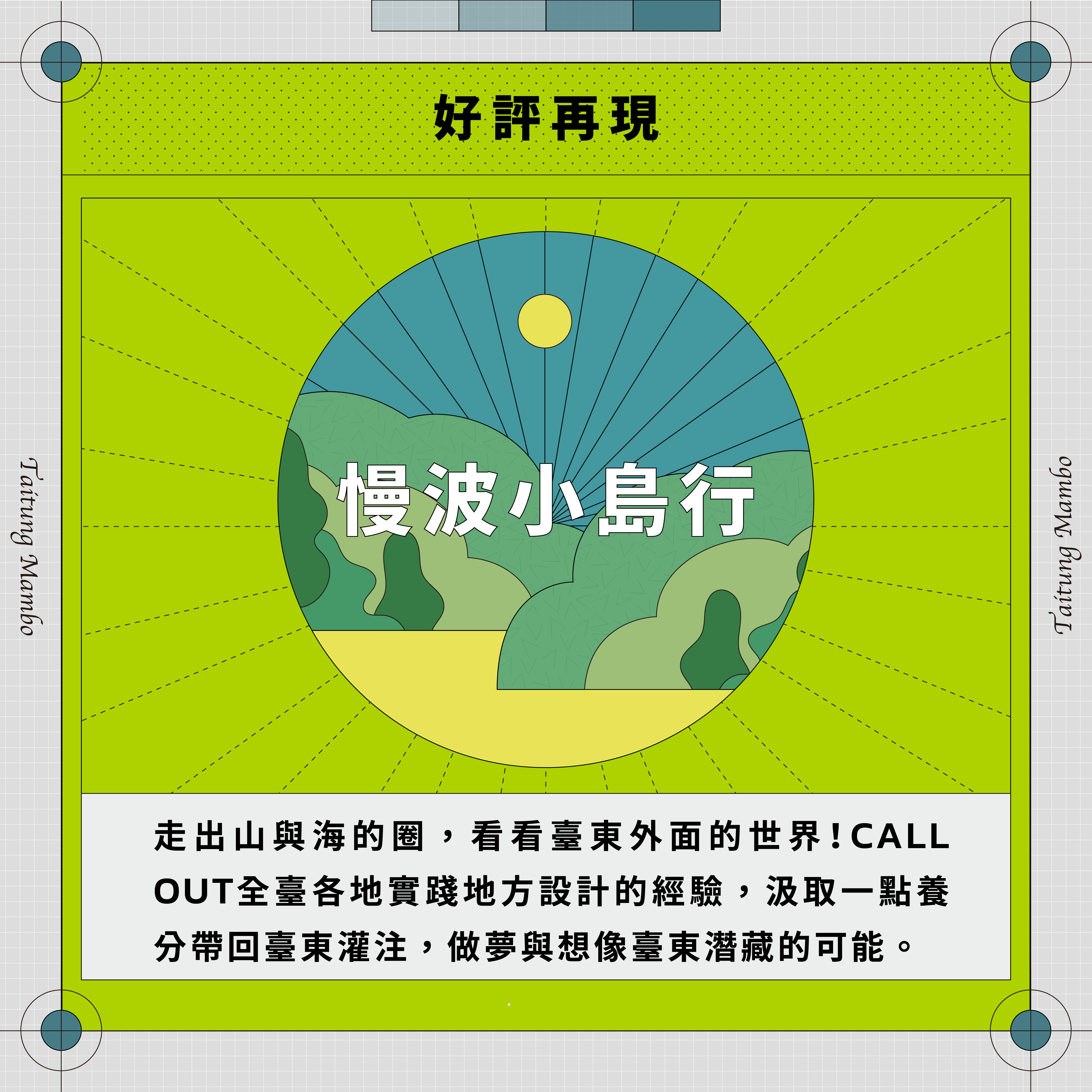 走出山與海的圈,看看臺東外面的世界!CALL OUT 全臺各地實踐地方設計的經驗,汲取一點養分帶回臺東灌注,做夢與想像臺東潛藏的可能。