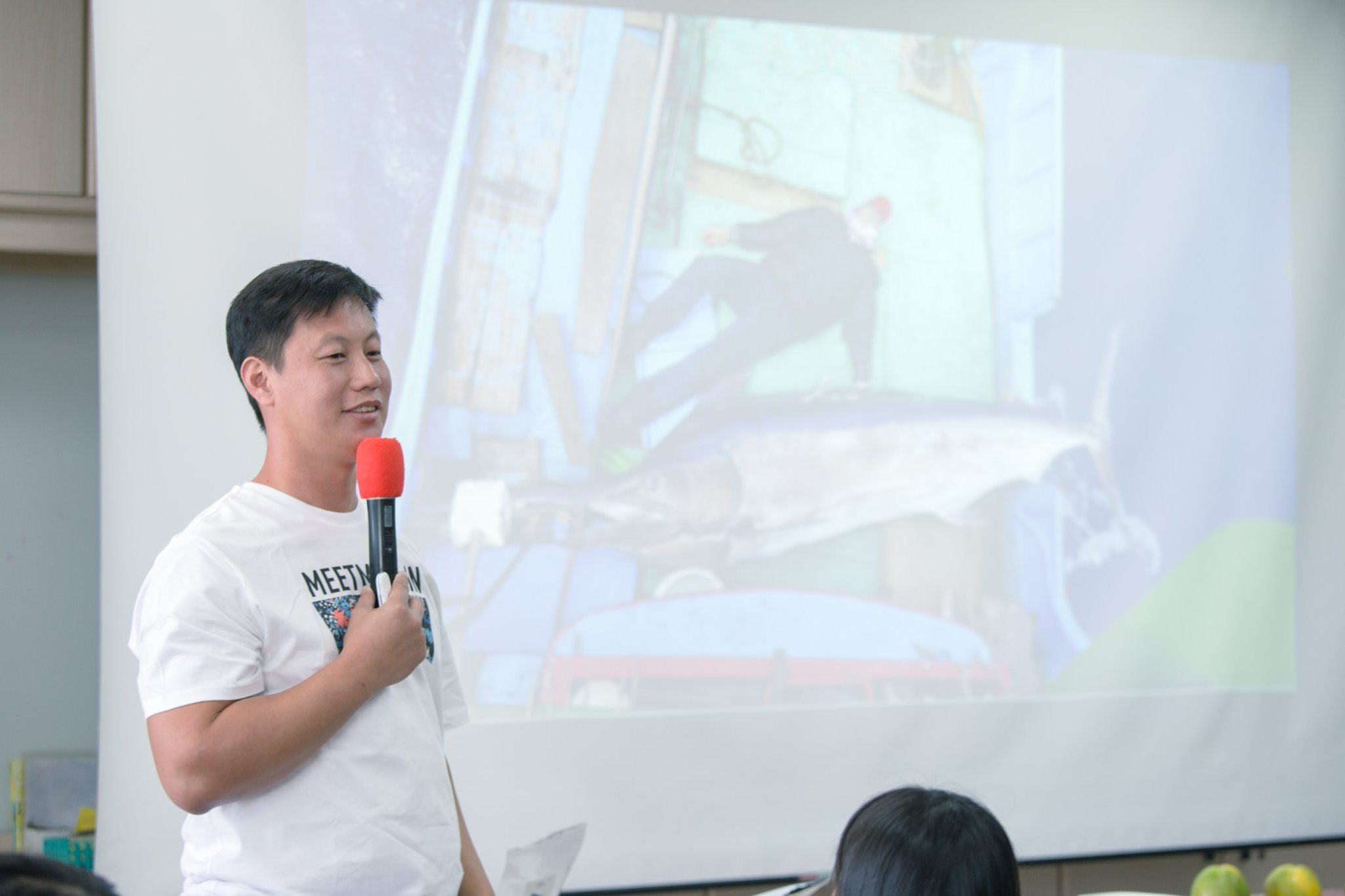 離新港漁港非常近的 #新港國中 ,由鄭瑞銀校長介紹新港國中的兩位大學長 —— 旗遇海味 林昱濱、 辰升水產生物科技 陳韋辰以及水越設計,將帶給國中的同學們一堂需要非常仔細品味的「漁業」與「味蕾探索」課程。