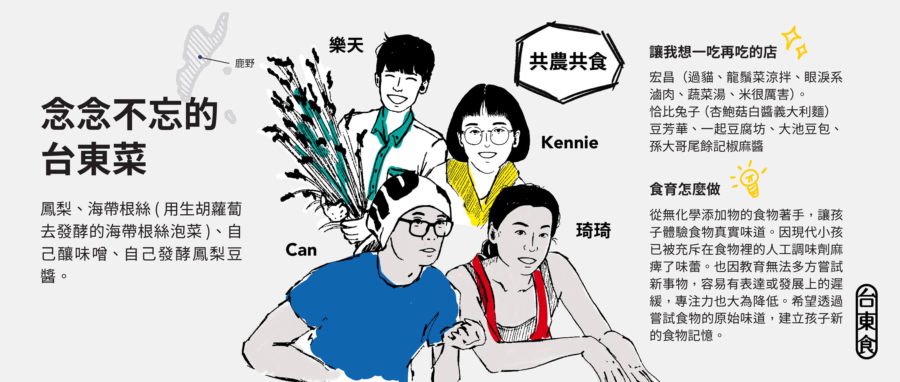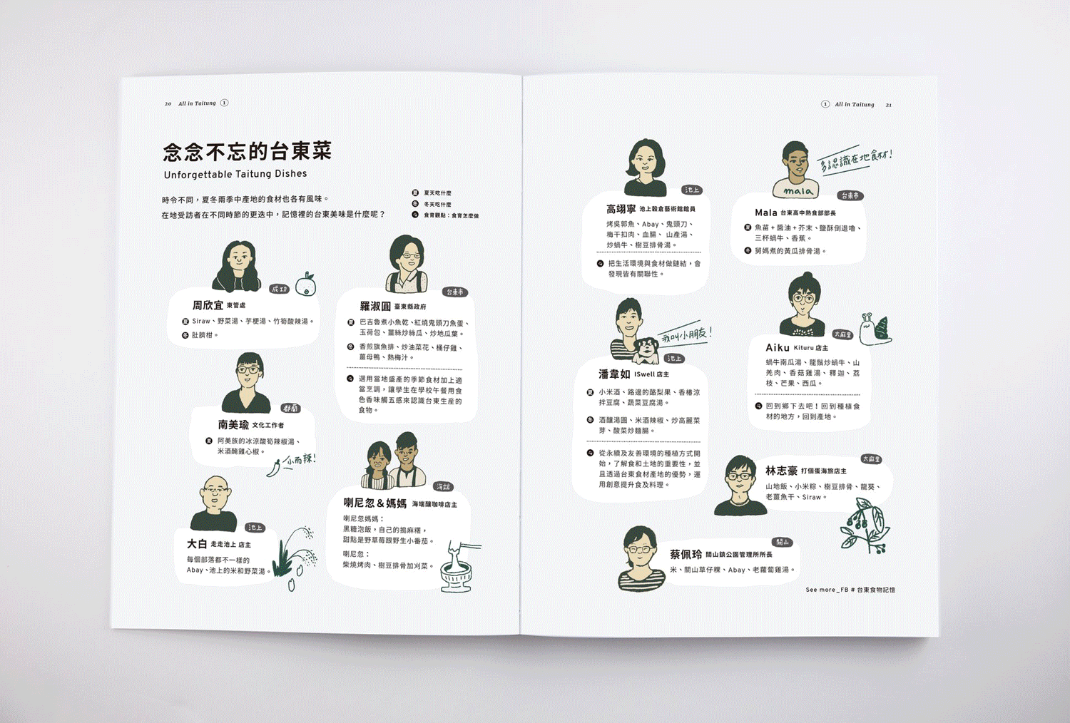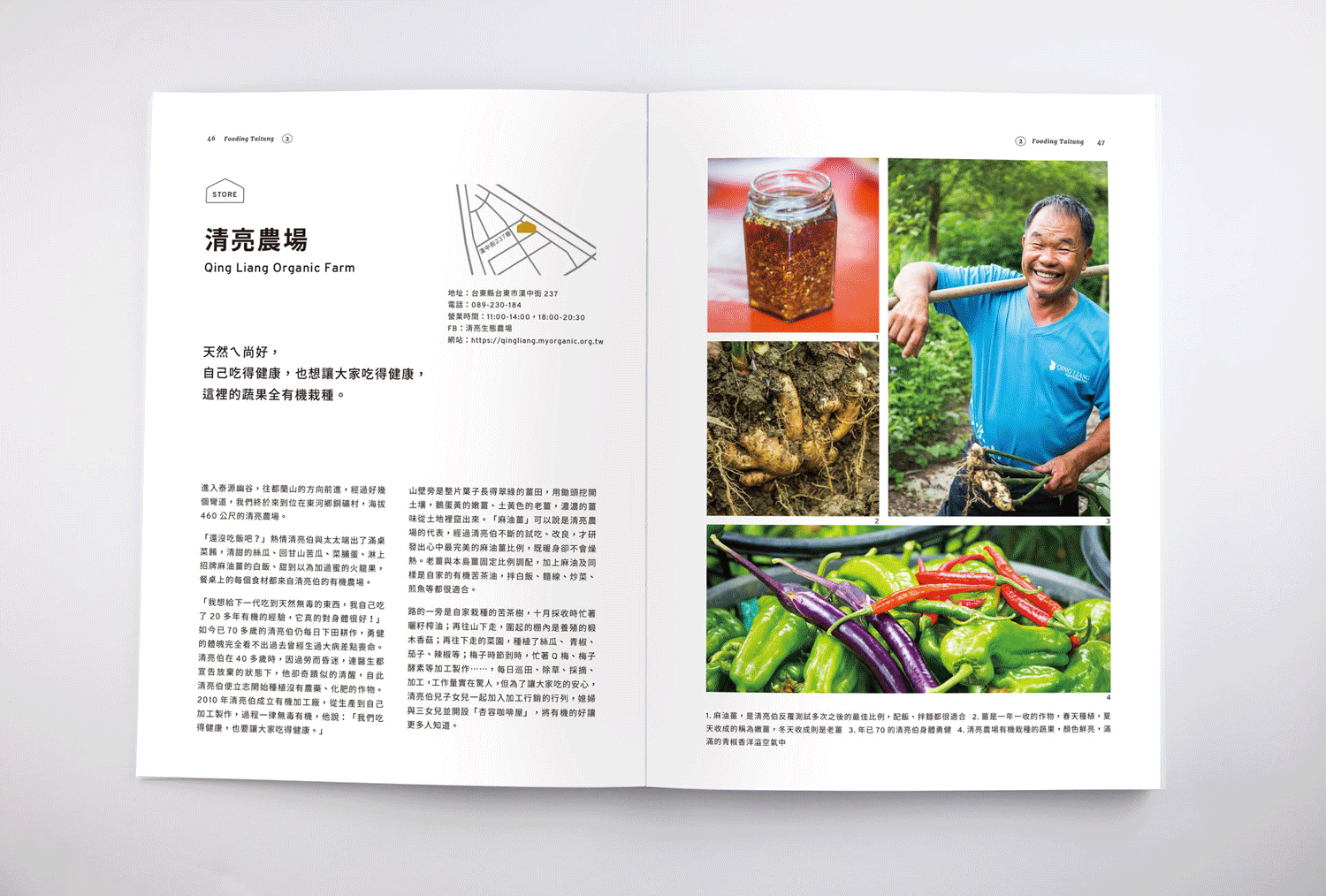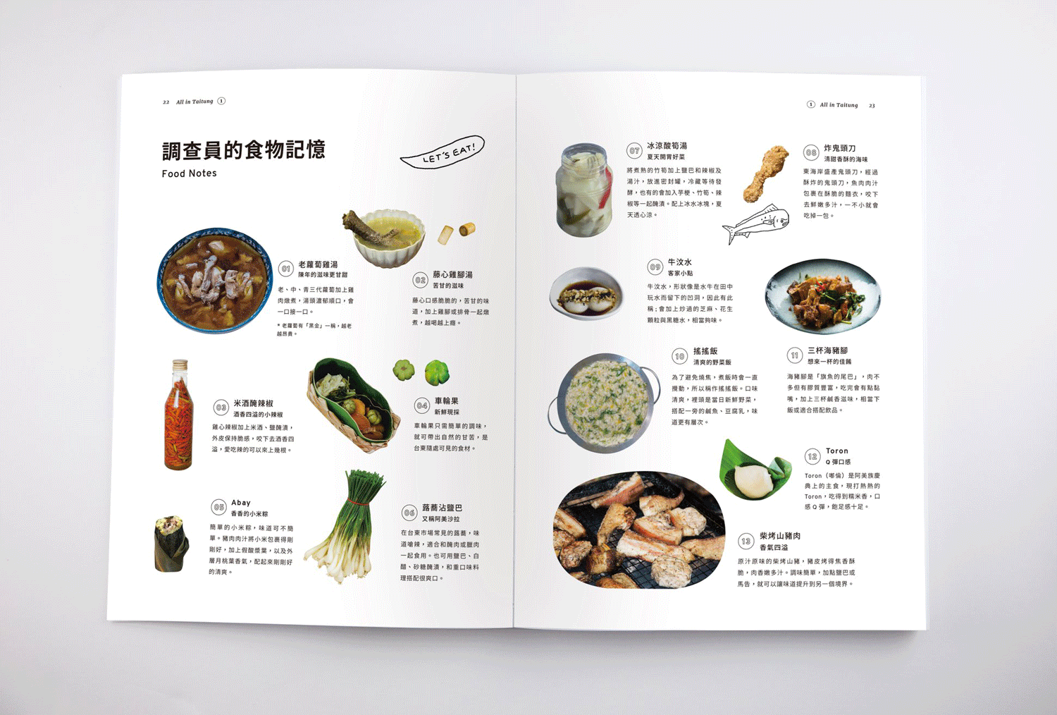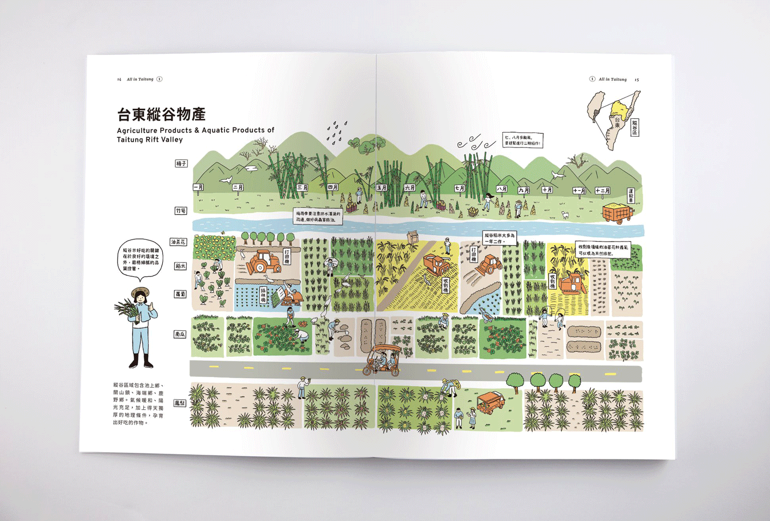 台東食育提案所透過「食」連結在地餐館達人、學校教育及家庭的日常美好風景,內容豐富的地圖及資訊圖表,以「食育新觀點」深入台東風貌。