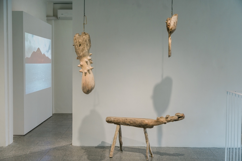 曾獲金曲獎的音樂製作人陳品先與藝術家林稚宗,共同打造溫潤質感的聲音裝置,結合海神傳說與自然地景的主題,旅途中採集的故事,或是地景感受,旅行的律動,所轉化的裝置。媒材都是使用在地的漂流木重新雕塑。