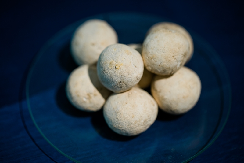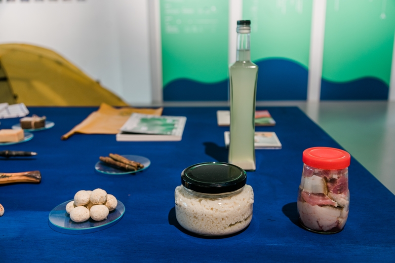 在東海岸上,阿美族人是多數的生活族群,策展團隊選了代表物:酒麴、釀造甜酒、傳統菸草捲、獵刀等,作為分享物,像是酒麴,在古法釀酒其實需要照著四季氣候去採集需要的植物來培養酒麴,最後才能釀酒,裡面包含著他們的生活哲學與自然共處的文化,菸草與酒,在過往都是得來不易,更是融合了敬畏神靈,與神靈溝通的重要媒介。
