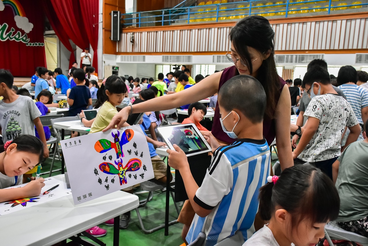 有的同學把筆盒內的顏色通通加了上去,有的同學加上了表情文字,還有同學把家中最重要的爸爸媽媽畫在黑青身上,接著透過平板中的專屬應用程式,就可以看到紙上黑青跳出來打招呼囉!