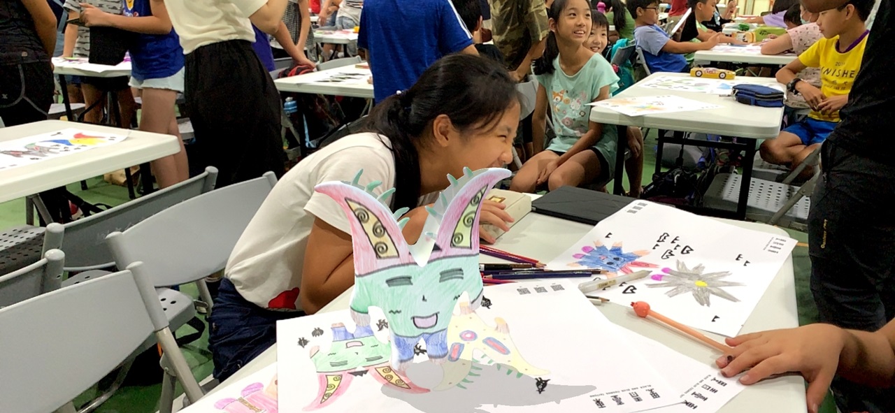 黑青圖像創作者陳普一一向小朋友們介紹黑青角色從平面繪畫到立體甚至AR虛擬角色的過程,因為所有人都黑青過 ,所以邀請大家以「想克服的困難」為主題,為自己設計獨特的黑青角色。