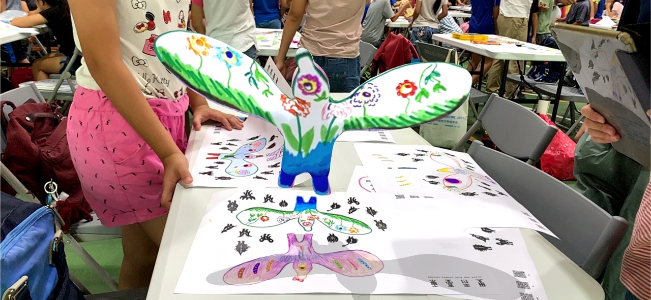 教室裡黑青團隊將活動主角「魟魚氣球」緩緩充氣,由魟魚在講台前擔任助理講師,陳普透過影片介紹了「黑青」,也播放黑青到各國旅行的影像記錄,接著由小朋友自由發揮,用畫筆彩繪出屬於自己的黑青角色。而洋洋灑灑地上完色後,就是小朋友們最興奮的時刻:拿起平板打開黑青APP,一隻隻活潑的黑青躍然於圖畫紙上,小朋友們個個是又驚又喜!