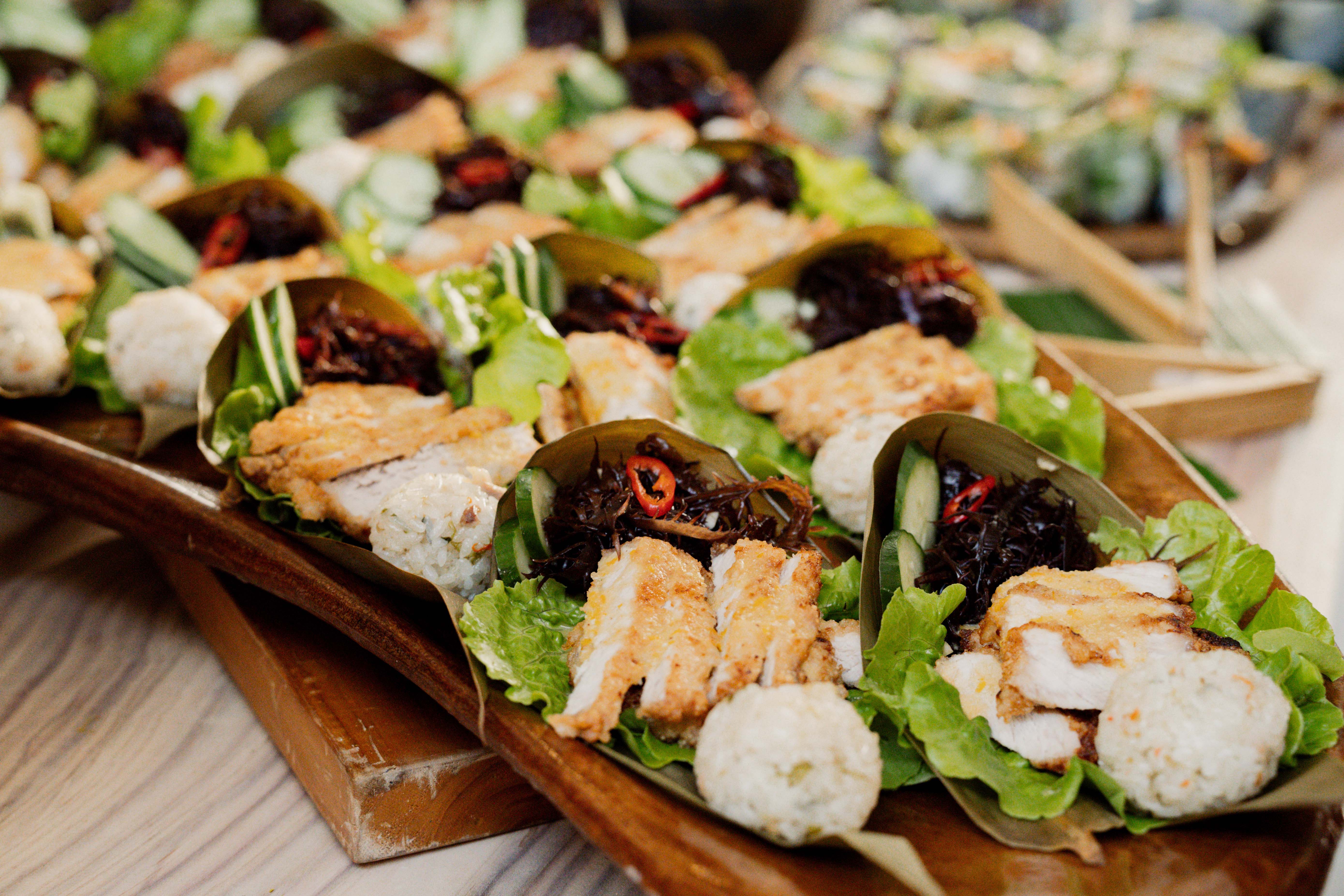 在餐宴設計上,麻煩被轉化爲台語「厚工(kāu-kang)」的語意,取自臺東常見的「一家一菜」一戶一麻煩的精神,邀請十間臺東店家端出十道屬於自己的「麻煩經典」—— 「稻米與月桃花」帶來的樹豆咖喱蔬食捲餅,花費8-10小時、不加一滴水熬製的柴燒番茄糊,始終是店內經典的麻煩盛事;「旗遇海味」致敬獎項的「很少」理念,使用全臺一年只有一百多尾的手鏢白旗魚,搭配極度乾淨的海水才能培育出的海葡萄、成功限定的肚臍橙,以稀有的麻煩行動支持永續漁業、全魚利用。十家十菜,向獲獎貴賓傳達「用心款待」的厚工心意。