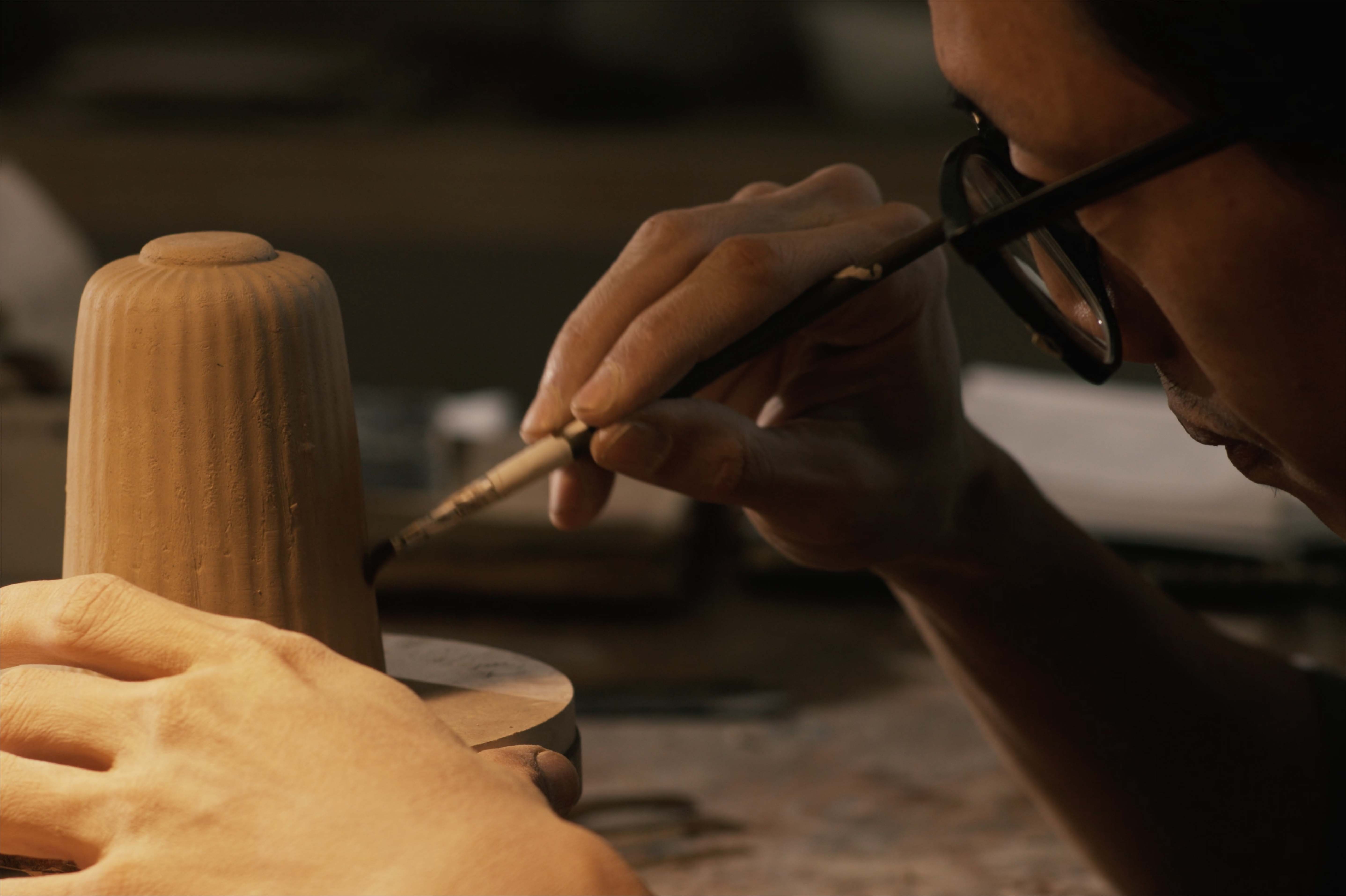 陶與玻璃兩種異材質的結合,透過比例、材質、細節的精心拿捏,歷經多次試燒與調整,才找到恰好的厚度與光澤,使獎盃型態得以達到完美協調與平衡。五大獎項更分別對應「上杯」色彩各異的釉色,搭配「下杯」的手刻紋理,保留了陶藝家的工藝手感痕跡,讓每一座獎盃,都是對「講究細節與工序」的麻煩致敬。