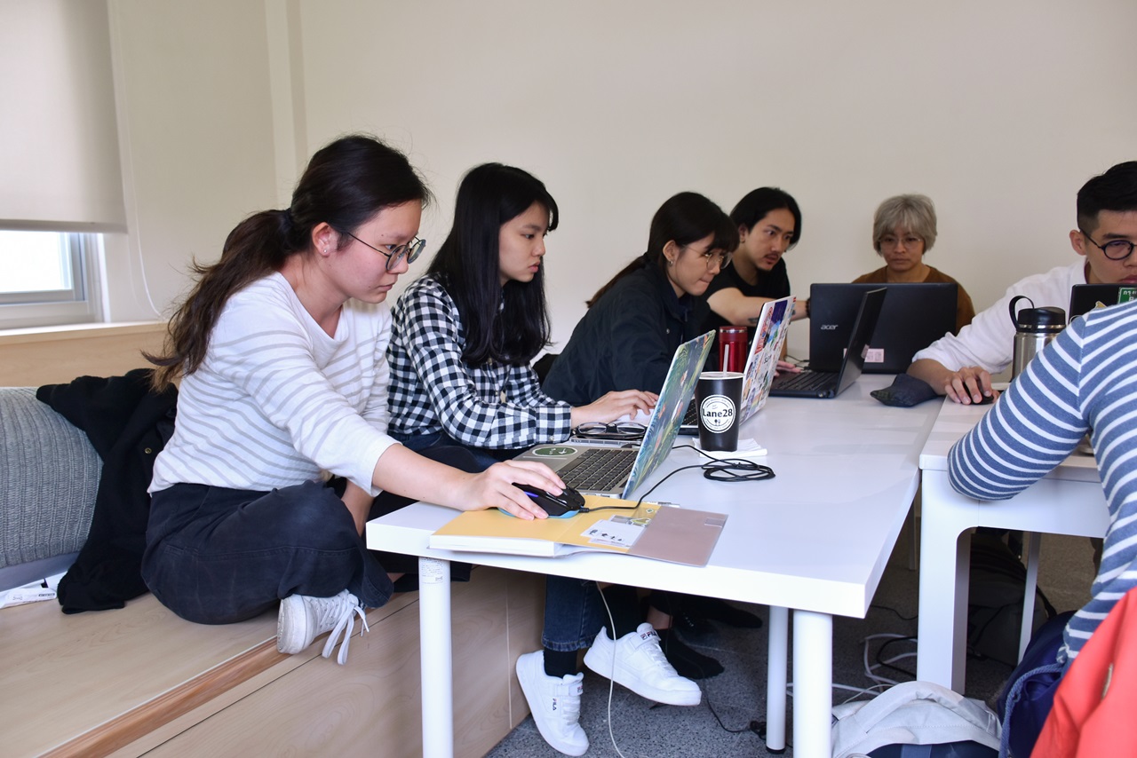 無論是閉眼聆聽或是視覺觀賞,同一首歌帶給每位學員的想像是截然不同的,在Jay引導下學員們透過對歌曲的想像來設計封面稿,體驗直覺與設計之間的關聯,也在個別討論後來延伸創作,並於最後上台分享各自的設計作品。